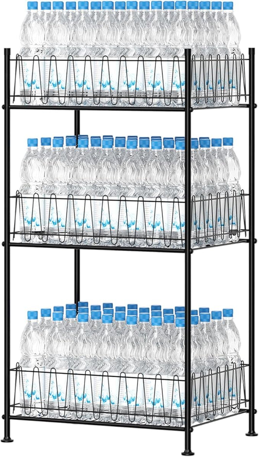 smusei 3 Tier Drink Organizer for Pantry Water Bottle Storage Rack, Multifunctional Drink Storage Free Standing Bottled Water Holder Beverage Soda Can Tumbler Dispenser Stand for Kitchen