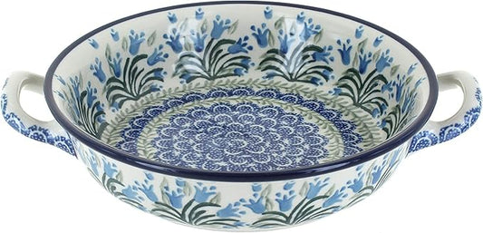 Blue Rose Polish Pottery - Blue Tulip Bouquet Small Round Casserole with Handles - 8.25" Diameter - Unique, Dishwasher Safe, & Durable Bakeware