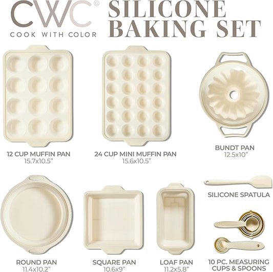 COOK WITH COLOR 17 Pc. Silicone Baking Pan Set - Non-Stick & Easy Clean Silicone Muffin Pans for Baking with Sturdy Metal Frame for Stability, Flexible Cake Molds, Includes Measuring Cups and Spoons