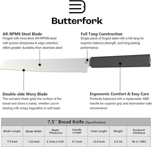 7.5" Serrated Bread Knife for Homemade Bread, Razor Sharp AR-RPM9 Steel & Innovative Wavy Edge, Professional Serrated Knife for Sourdough Bread Cake, Gift Box for Baker Home Chefs
