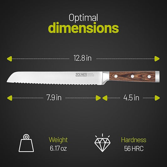 8-Inch Bread Knife – Serrated High Carbon German Stainless Steel Blade for Bread, Bagels & Pastries – Ergonomic Handle, Rust-Resistant, Ultra-Sharp Edge – Ideal for Home Bakers and Chefs.