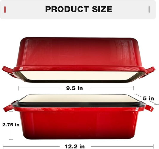 9x5 Enameled Cast Iron Loaf Pan with Lid – Bread Pan for Sourdough, Cake, Meatloaf, Even Heat, Nonstick, Easy to Clean, 2 Piece Set