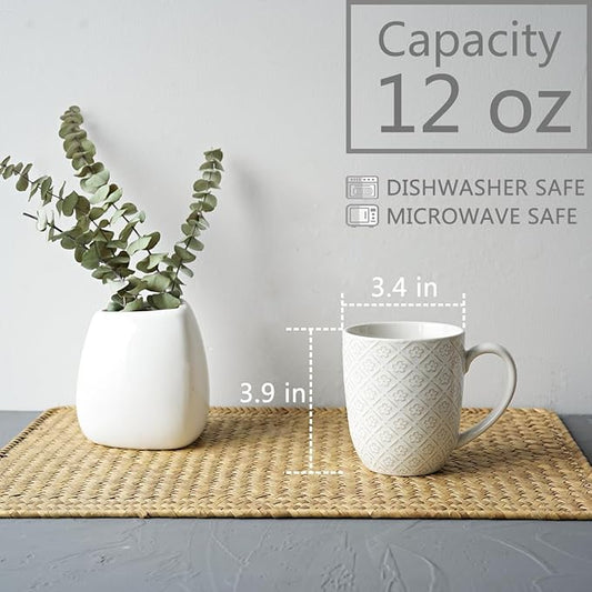 Bosmarlin Ceramic Coffee Mug Set of 4, 12 Oz, Tea Cups, Dishwasher and Microwave Safe (White, 12 oz)