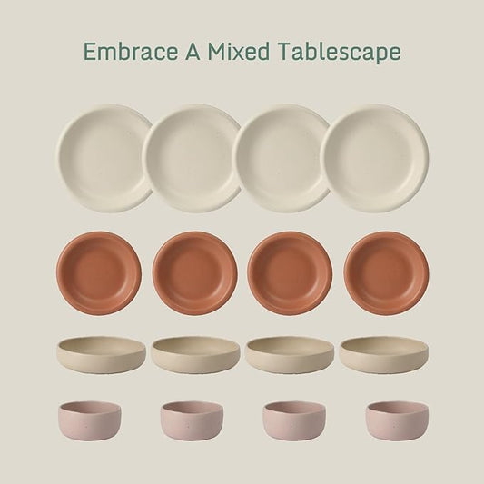 Bloomhouse Corsica Clay 16 Piece Stoneware Rustic Reactive Glaze Dinnerware Set - Stackable Plates and Bowls Set. Service for 4 - Matte Assorted Colors
