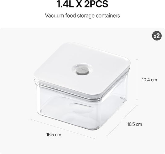 Premium Airtight Food Storage Containers, Square 2PC/Set(1.48qt/1.4Lx2pcs), Smart One-Click Seal Lid, No Hinges, 100% Leak Proof, BPA-FREE, Dishwasher, Freezer & Microwave Safe