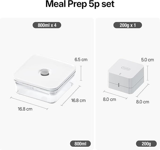 Premium Airtight Food Storage Container. Meal Prep 0.85qt 5pc/Set. 4pcs Container and Vacuum Sealer. Patented Double Silicone Lining, 100% Leak Proof, BPA-FREE