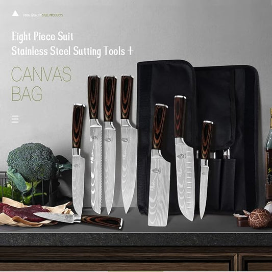 8 Pieces Knife Set with Magnetic Block, Ultra-Sharp High-carbon Steel Kitchen Knife Set, Professional Knife Block Set with Ergonomic Wooden Handle & Sharpener