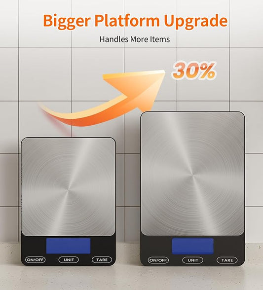 33lb Digital Kitchen Scale, Food Scale Rechargeable with Stainless Steel, Grams and Ounces, USB Charging, 1g High Accuracy for Baking, Cooking, Food BK806