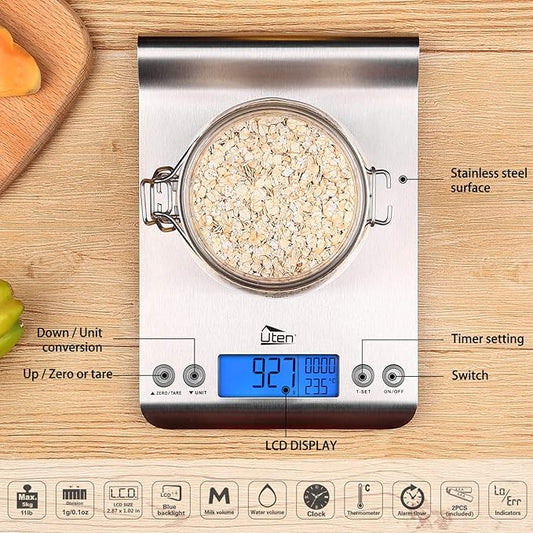 Digital Kitchen Scale Ultra Slim Multifunction Stainless Steel Hook Design Food Scale 11lb 5kg with Back-Lit LCD Display Ideal for Measuring Ingredients and Liquids