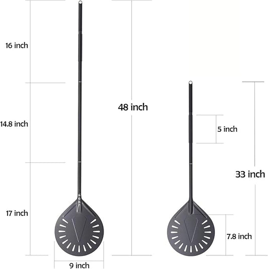 Aluminum Turning Pizza Peel, 9 Inch Pizza Turning Peel with Detachable 33 or 48 Inch Long handle, Luxury Pizza Paddle for Baking Homemade Pizza Bread