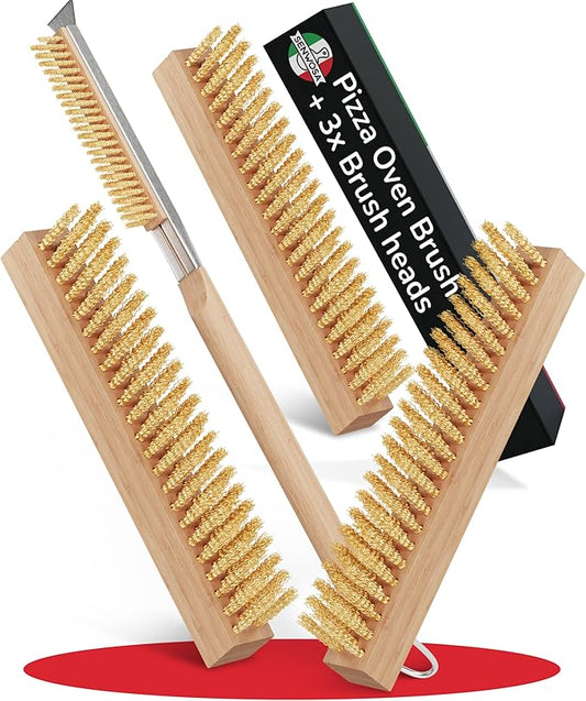 Pizza Oven Cleaning Bundle - 4-Piece Set with 26-Inch Brush, Integrated Scraper & 3 Replacement Heads