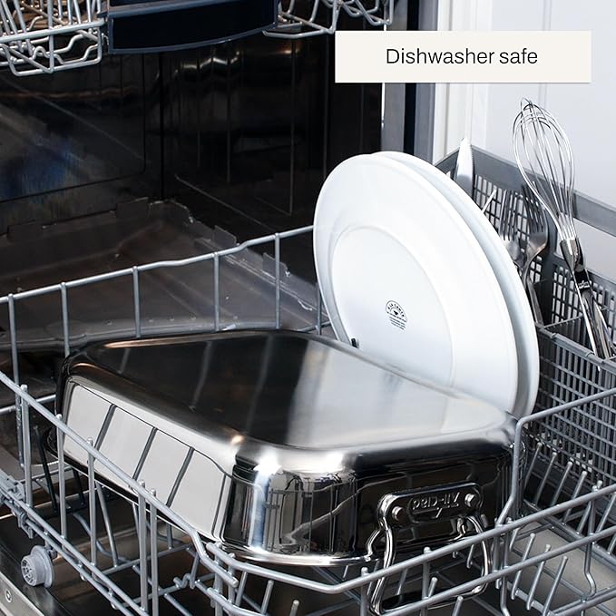 • This All-Clad Large Stainless Steel Roaster with Rack, 13 x 16 inch provides ample space for all your roasting needs, ensuring you can cook large cuts of meat or multiple dishes simultaneously.
