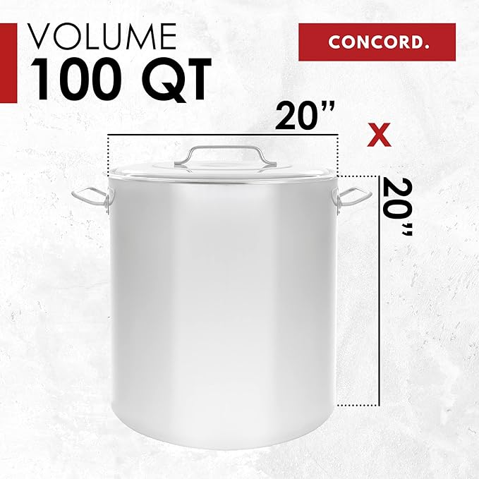 Concord Cookware Stainless Steel Stock Pot Kettle, 100-Quart