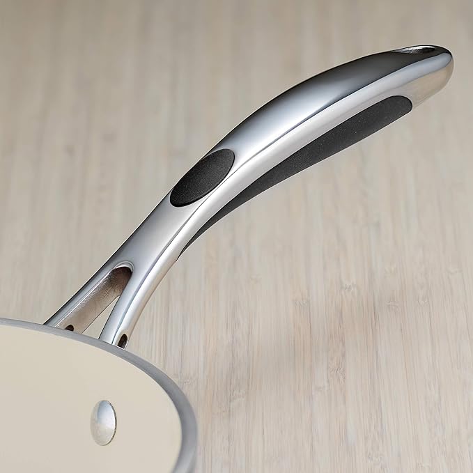 • Ergonomically designed, cast stainless steel handles feature a stay-cool, soft-grip accent with a convenient hang-hole for use with pot racks