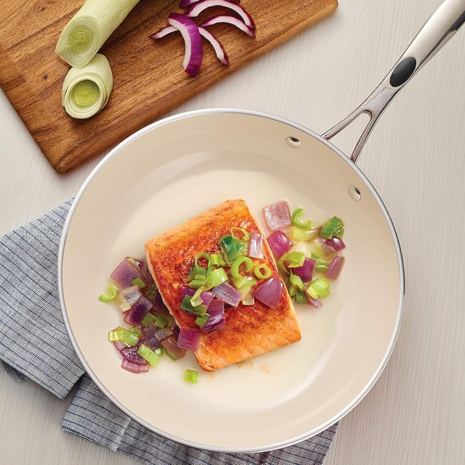 • Ceramic nonstick interior provides a healthy, eco-friendly, quick release and easy cleanup cooking surface