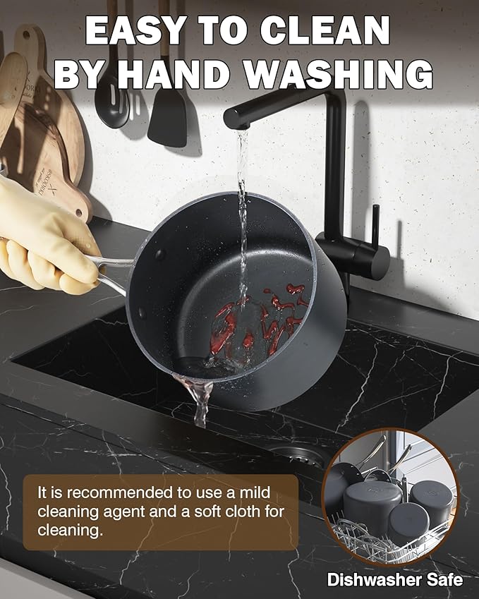 • Even Heat Distribution: Nonstick saucepan is made of heavy-duty aluminum that conducts heat quickly and evenly, resulting in evenly heated food and better cooking results