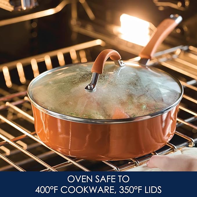 • BUILT TO LAST: Nonstick cookware set from Rachael Ray is backed by a Limited Lifetime Warranty