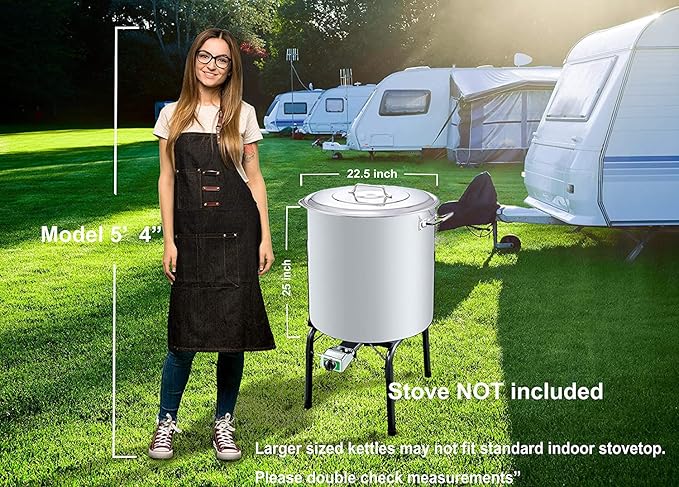 • 160 Quart Stainless Steel Stockpot with Lid. measurements 22.5" wide x 25" height (measurement for pot only)