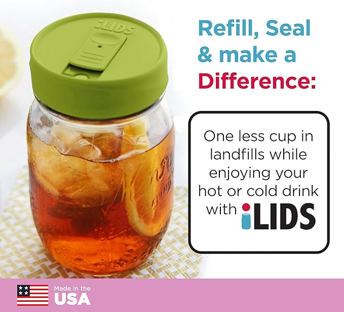 • REDUCE, REUSE & RECYCLE: Mason jars are everywhere! Use new OR recycled jars and top them with iLIDS for a step toward sustainability. Even the packaging is sustainable: made from recycled and recyclable kraft board.
