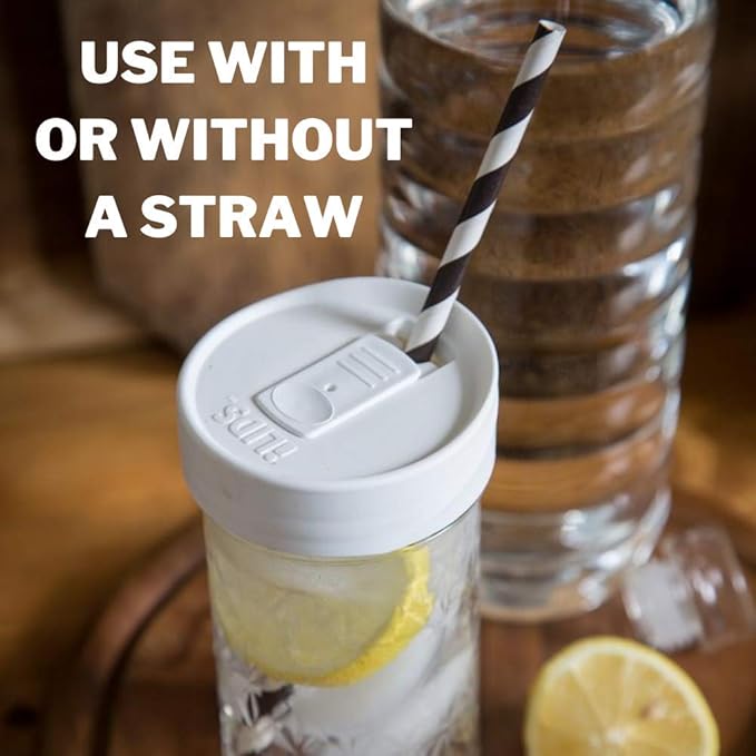 • MASON JAR DRINK LID: This Drink Lid has a specially shaped, large opening that makes it easy to drink straight from the lid OR use a straw. Use with hot or cold drinks, at home or on the go. Spill resistant. Fits REGULAR mouth jars of 2.75″ diameter.