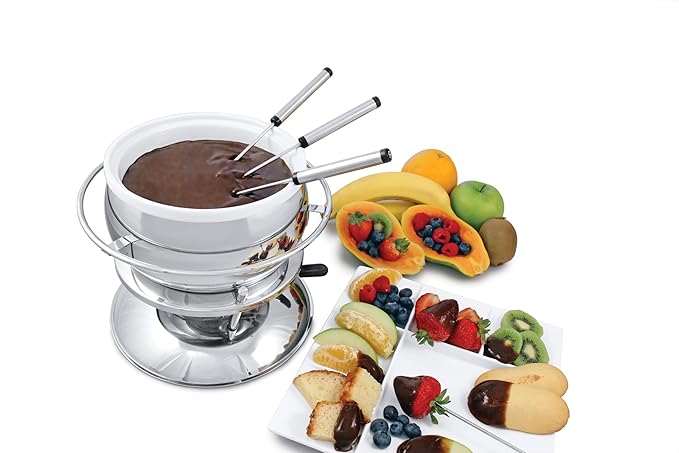 • Durable And Easy To Use: Built to last, the stainless steel pot provides even heat distribution and resistance to wear and tear, ensuring reliable performance over time. The ceramic bowl prevents burning, making it perfect for cheese and chocolate fondue.
