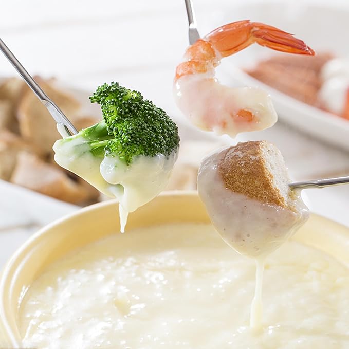 • STAINLESS STEEL FONDUE FORKS: lightweight, well-made, and super sturdy. Generally use them to eat fruits, marshmallows, etc. Perfect for a chocolate fondue fountain party, cheese fondue, roast, etc.