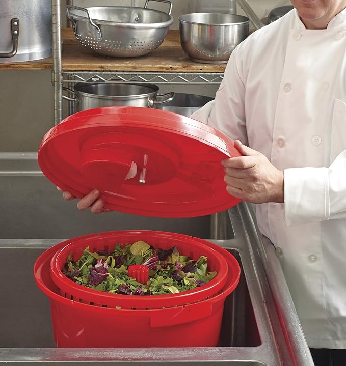 - BUILT FOR LONG-LASTING PERFORMANCE - Designed for demanding kitchen environments, the Chef Master 90008 Salad Spinner features a durable aluminum crank and reinforced gears that deliver smooth, reliable operation through frequent, heavy use. Perfect for commercial kitchens, catering services, salad bars, and serious home cooks, this rugged construction ensures long-term performance you can count on. Engineered for strength and efficiency, it’s the ideal solution for consistent, high-volume salad prep.
