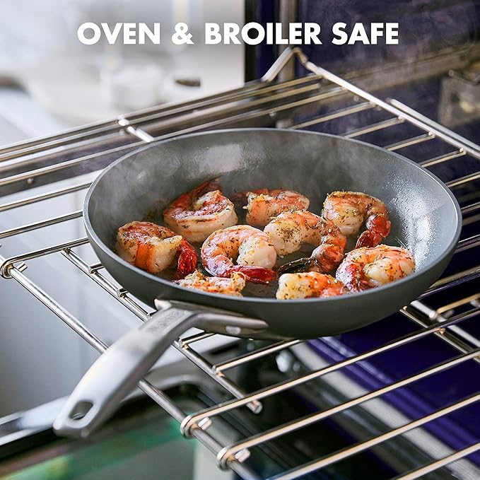 • GreenPan’s Thermolon healthy ceramic nonstick coating is free of PFAS, PFOA, lead, and cadmium, so it will never release toxic fumes, even if it’s accidentally overheated