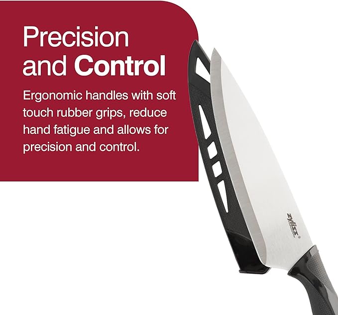 Zyliss 6 Piece Knife Value Set - Kitchen Knife Set with Sheath Covers - Chef's, Santoku, Utility, Serrated Paring, Paring & Peeling Knives - Stainless Steel