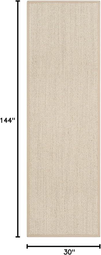 SAFAVIEH Natural Fiber Collection Runner Rug - 2'6" x 12', Marble & Linen Color, Sisal, Woven Design with Border (NF143B)
