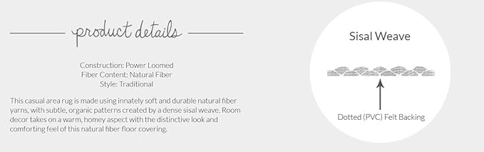 • [EXPERTLY CRAFTED]: Machine-woven by skilled artisans from plant-based sisal fibers for a rich, textured look and natural feel; slight color variations highlight its natural beauty; fabric border provides a clean, finished edge