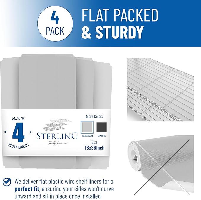 Sterling Shelf Liners Wire Rack Covers: Plastic Shelf Liner Cover for Wire Shelving: Cover Mats for Shelves in Pantry, Closet, and More: 18x36 Inch: Clear, Set of 4