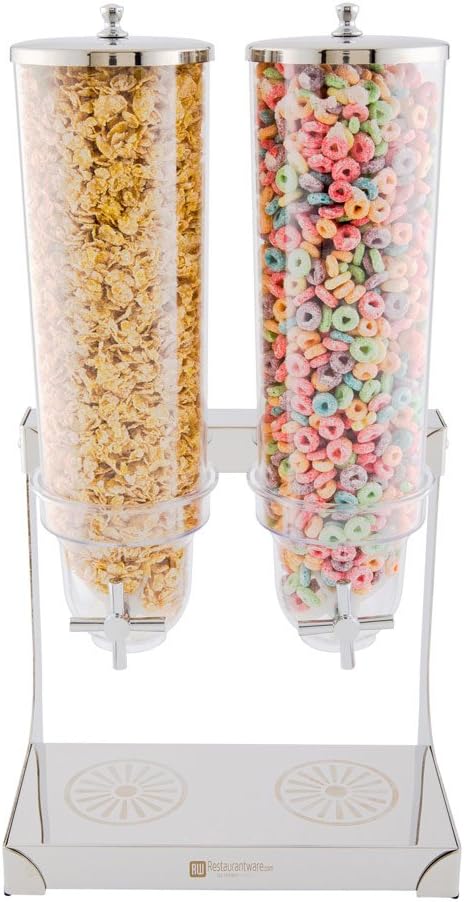 • ELIMINATES MESSES ON COUNTERTOPS: This double cereal dispenser includes a tray that outlines 2 bowls on its surface, allowing family members to know where to place their bowls when dispensing cereal.