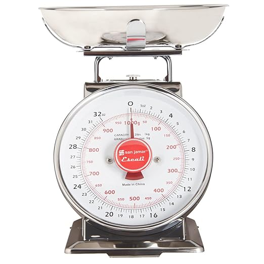 San Jamar Escali Promzr Mechanical Dial Scale with Bowl for Kitchens and Restaurants, Metal, 2 Pounds, Silver