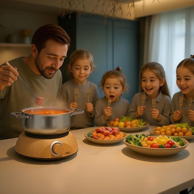 • POWERFUL 1500W QUICK-HEATING SYSTEM - Experience 30% faster melt times vs conventional pots with commercial-grade heating technology. Precisely adjustable temperature ensures perfect consistency for chocolate, cheese, broth, or oil fondues