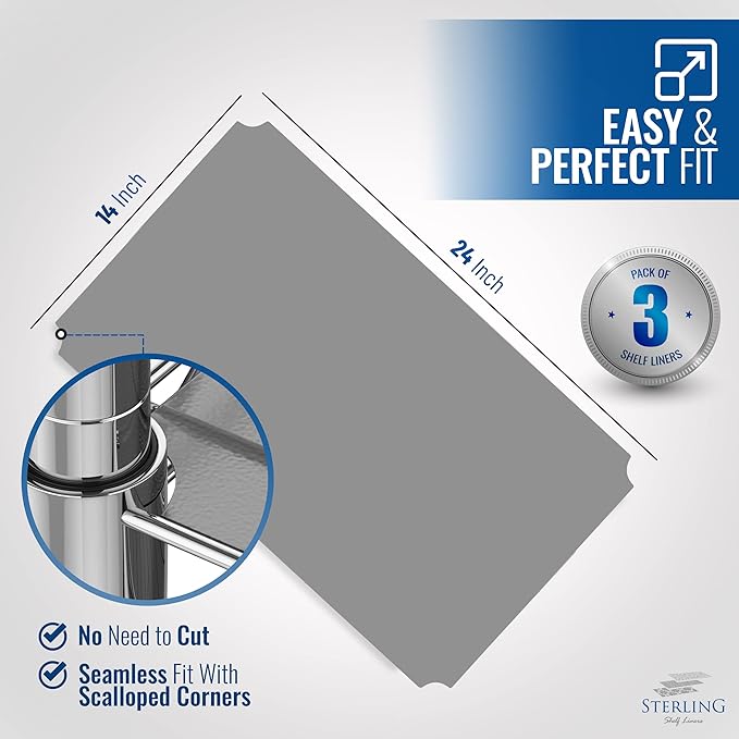 Sterling Shelf Liners for Wire Shelf System: Set of 3 in Graphite: 13.4 x 23.2 inch: Plastic Wire Shelving Mats