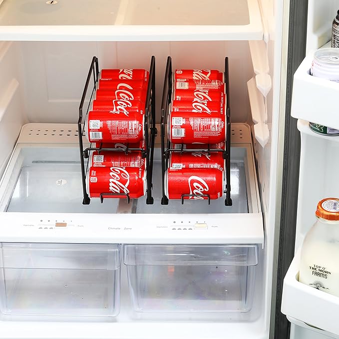 • Beverage Can Dispenser Rack holds 12 standard size 12 oz soda cans and small size food cans.