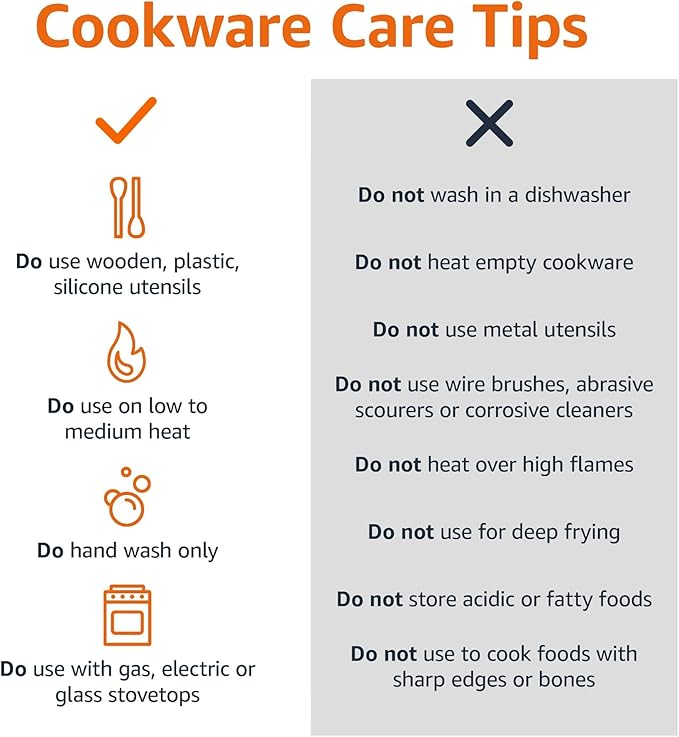 • NONSTICK COATING: This nonstick pots and pans set allows food to slide off effortlessly without sticking