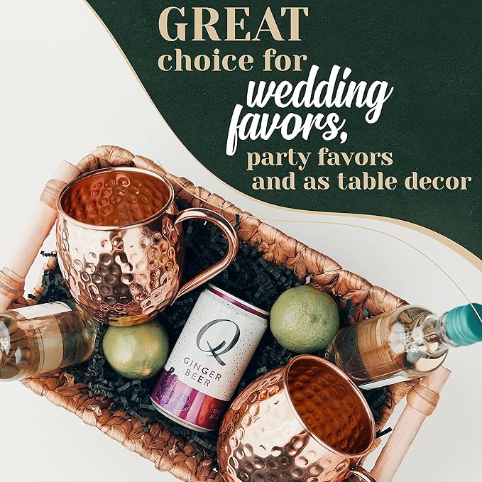 • 100% Pure Copper Mugs: Made from real copper, just like the original Moscow Mule mugs from 1941. These mugs not only make your drinks look and taste great but also add a stylish touch to your home bar.