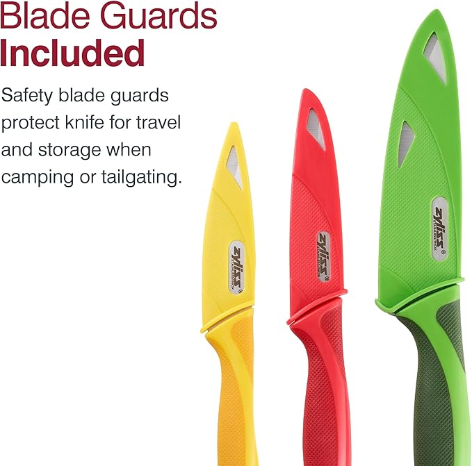 Zyliss 3 Piece Knife Value Set - Kitchen Knife Set - Kitchen Knife Set with Sheath Covers - Includes Paring, Serrated Paring & Utility Knives - Stainless Steel