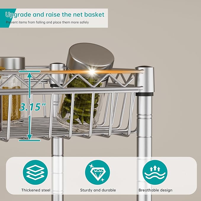 • Narrow Wire Shelving: The length and width of the shelf are only 13.5 inches, saving space without occupying area, can adapt to narrow spaces, and very suitable for closets, kitchens, garages, laundry rooms, apartments, and even offices.