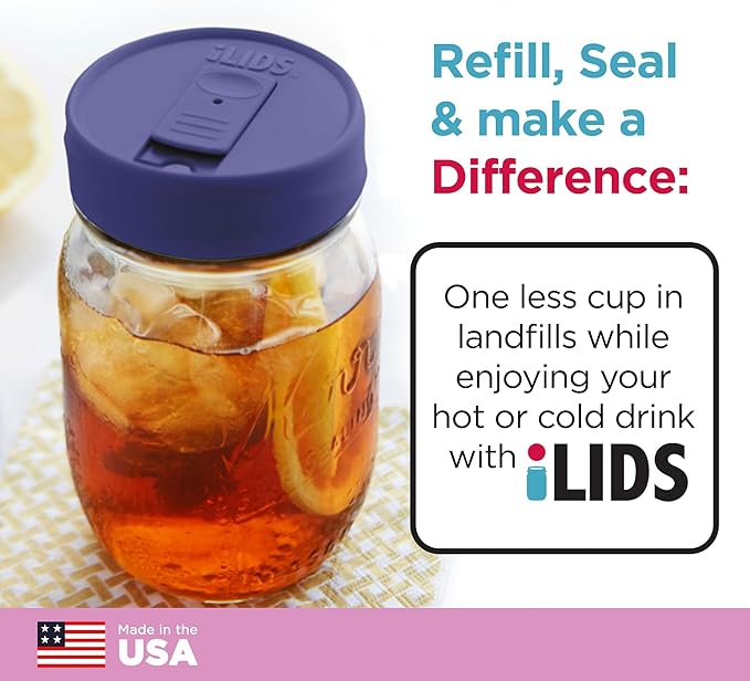 • REDUCE, REUSE & RECYCLE: Mason jars are everywhere! Use new OR recycled jars and top them with iLIDS for a step toward sustainability. Even the packaging is sustainable: made from recycled and recyclable kraft board.