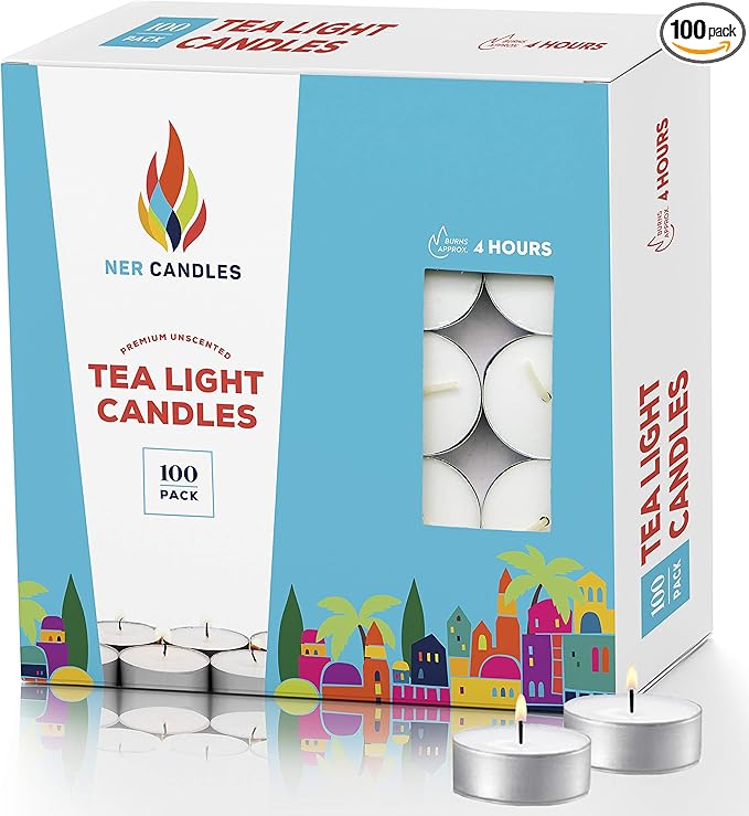 Tea Lights Candles - 4.5 Hour Burn Time - 100 Pack Bulk Candles - White Unscented - Travel Candles - Shabbat Candles - Long Burn Time
