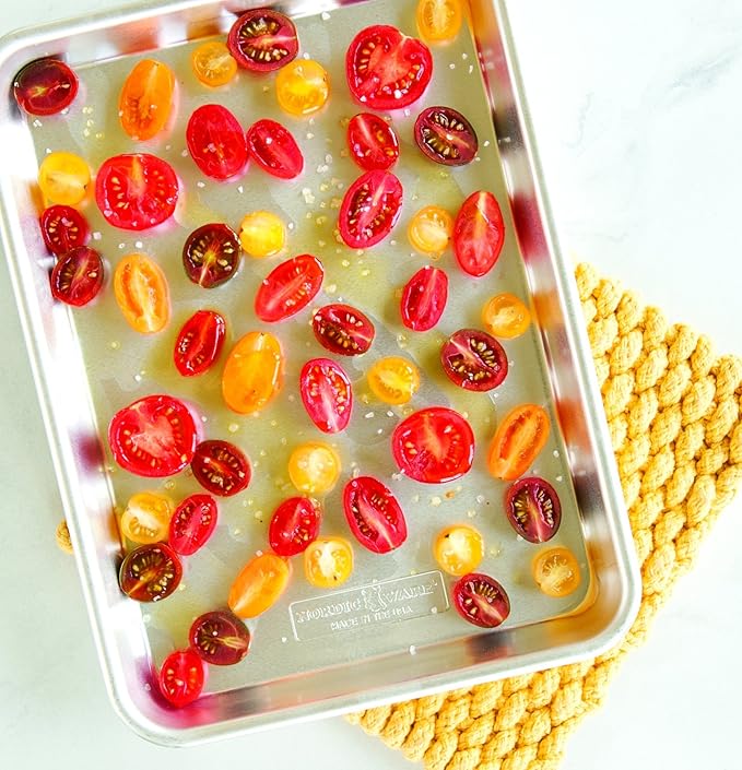 • Made in America of domestic and imported materials. Our aluminum bakeware-quality pieces are made to withstand a lifetime of use in your home kitchen.