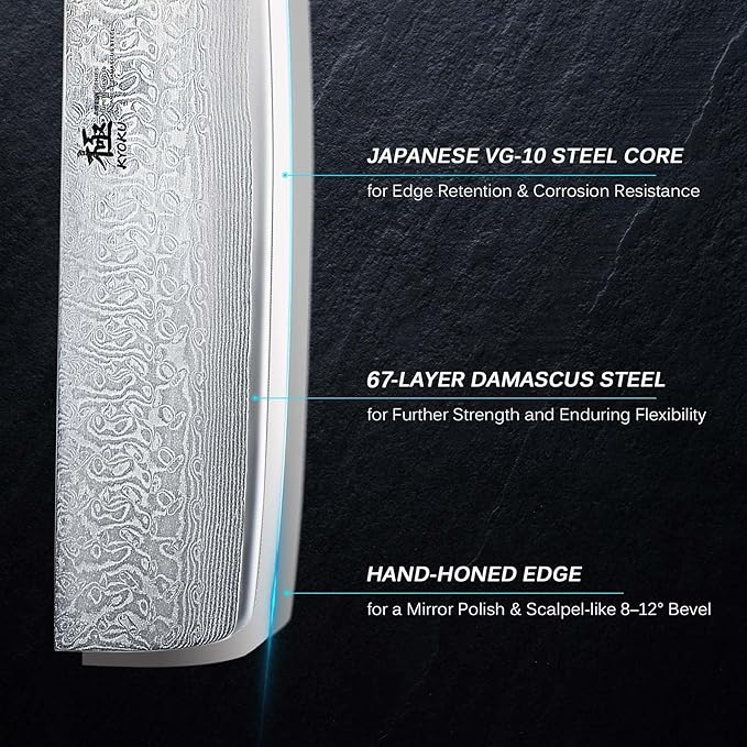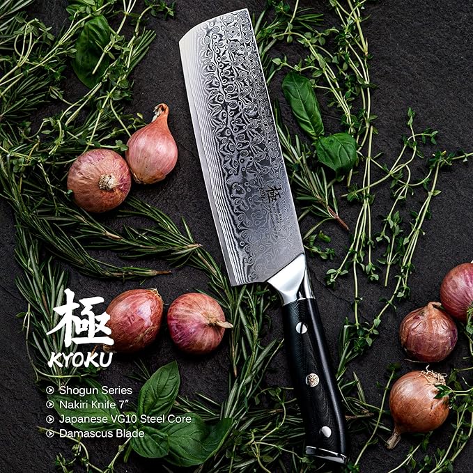 KYOKU Nakiri Knife - 7" - Shogun Series - Japanese VG10 Steel Core Damascus Blade - with Sheath & Case