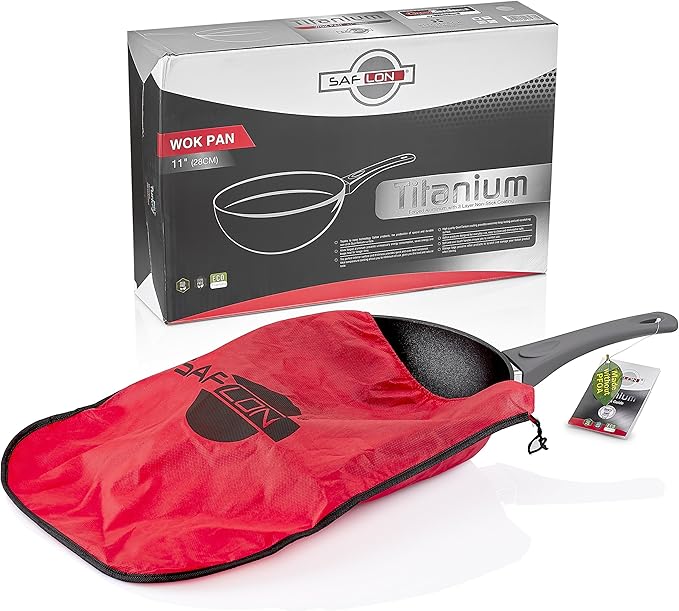 Saflon Titanium Nonstick 5 Piece Wok and Fry Pan Set 4mm Forged Aluminum with PFOA Free Scratch-Resistant Coating from England, Dishwasher Safe