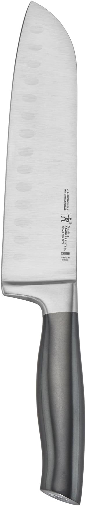 HENCKELS Graphite Razor-Sharp 7-inch Hollow Edge Santoku Knife, German Engineered Informed by 100+ Years of Mastery, Gray