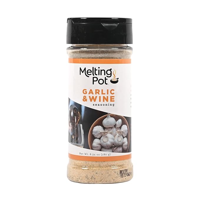 • The Melting Pot’s Garlic & Wine Seasoning is a versatile seasoning that can be used in a variety of recipes. It’s perfect for adding flavor to roasted vegetables, pasta dishes, soups and stews.