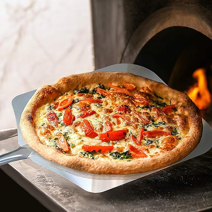 • EASY HANDLING: Pizza-making process is made easy with our 12-inch by 14-inch pizza turning peel. 21-inch detachable long handle pizza spatula is 35.5-inches long in total. Maneuvering and rotating pizza in a hot oven with our pizza board is a breeze.