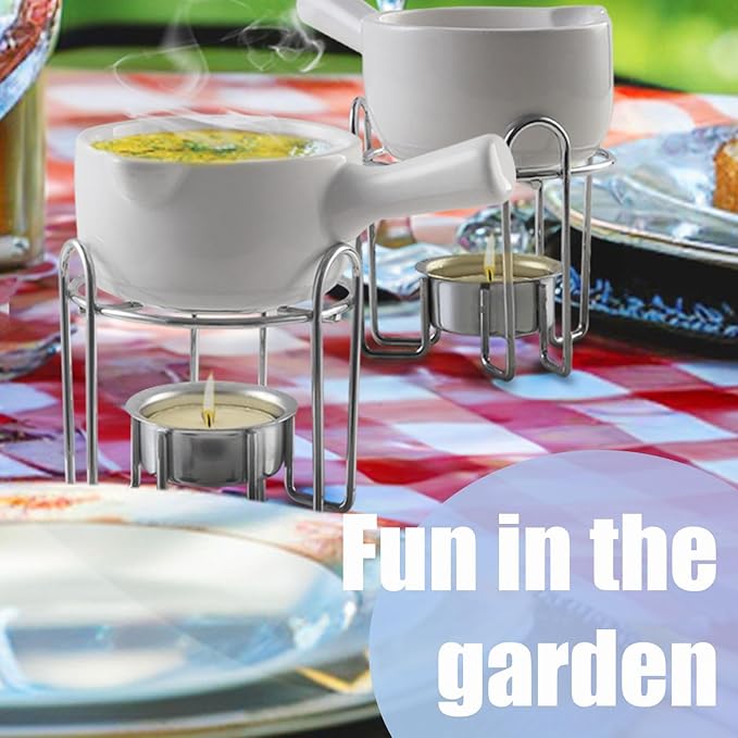 - ENHANCED STABILITY & OPTIMAL WARMTH - Butter warmers for seafood set of 4, feature a sturdy wire frame with a platform that securely holds the ceramic bowl in place, ensuring stability. This design offers enhanced stability compared to a top support ring for suspending the ceramic bowl. There has been an adjustment in the tea-light candle placement to ensure an optimal distance from the flame to the ceramic bowl, providing gentle warmth and maintaining the butter at just the right temperature. Indulging in dipping crab legs into warm butter!